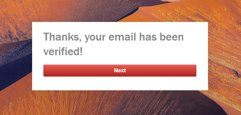 Klik Next, dan verifikasi email pada pesan yang dikirimkan ke alamat email yang terdaftar.