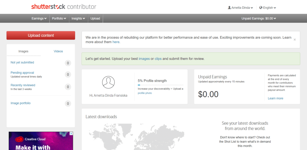 6. Selamat! kamu sudah terdaftar menjadi kontributor di Shutterstock.